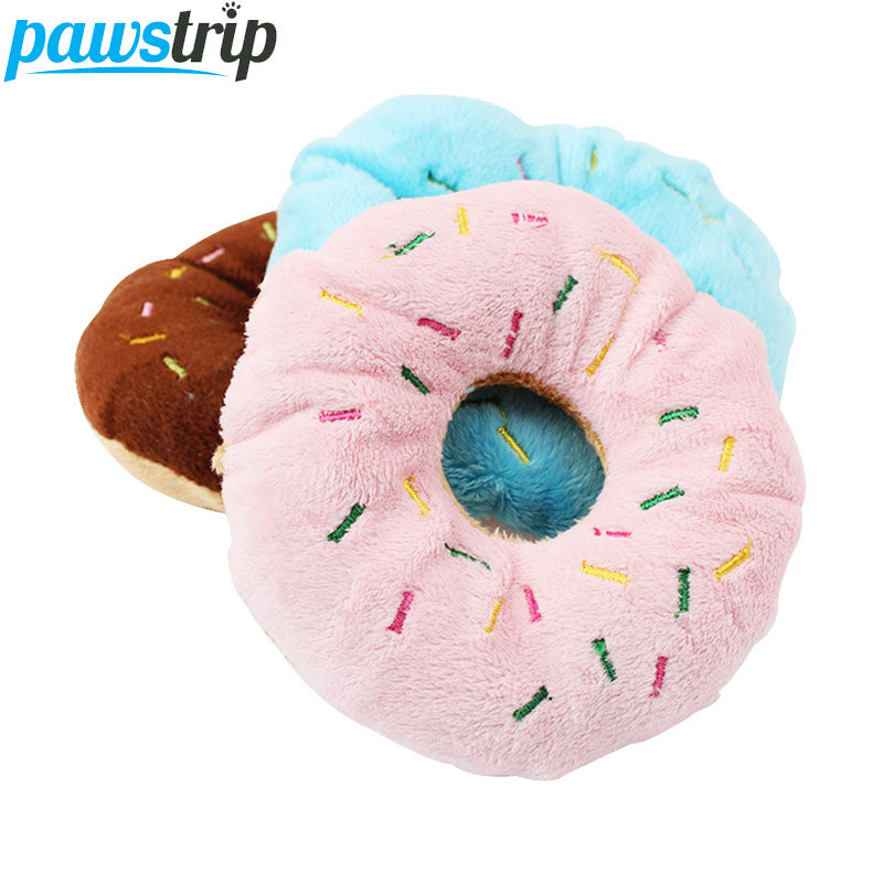 This fun donut plush toy is a perfect gift for pooch! With squeaky toy inside and round donut shape, this toy offers up lots of entertainment for your fur-child.